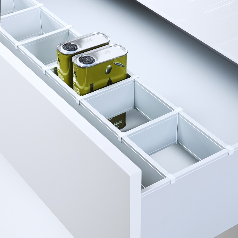 * The contemporary unit featured Poggenpohl’s +SEGMENTO concept in a high gloss, brilliant polar white lacquer (again, one of their most popular sellers). For me, it reads – Poggenpohl, but a little pop of surprise, when I pulled out drawers revealing a new aluminum drawer design. Customizable inserts allow the homeowner to arrange and re-arrange over time.