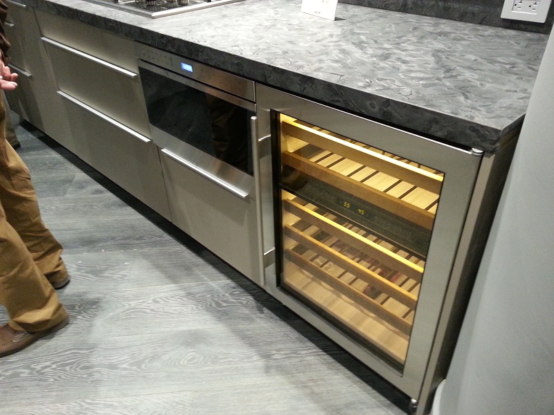 Supersizing the wine storage, Sub-Zero filled out this wall by showing off their largest cooler, holding an impressive 147 bottles of wine. (Just out of frame @ left above.)